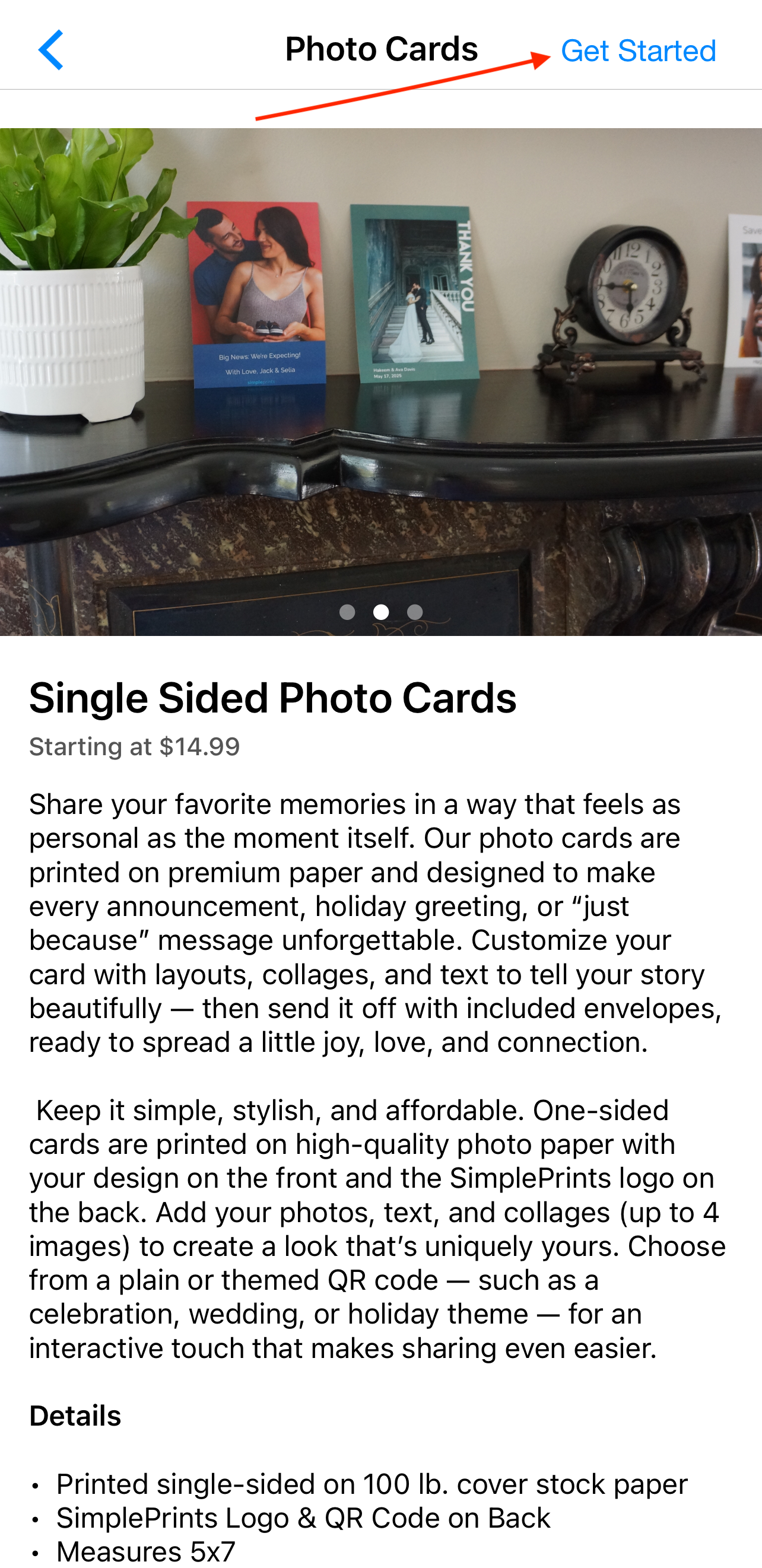 Creating 1-sided photo cards in the SimplePrints app is quick and easy! Follow the steps below to design and order your custom cards today.