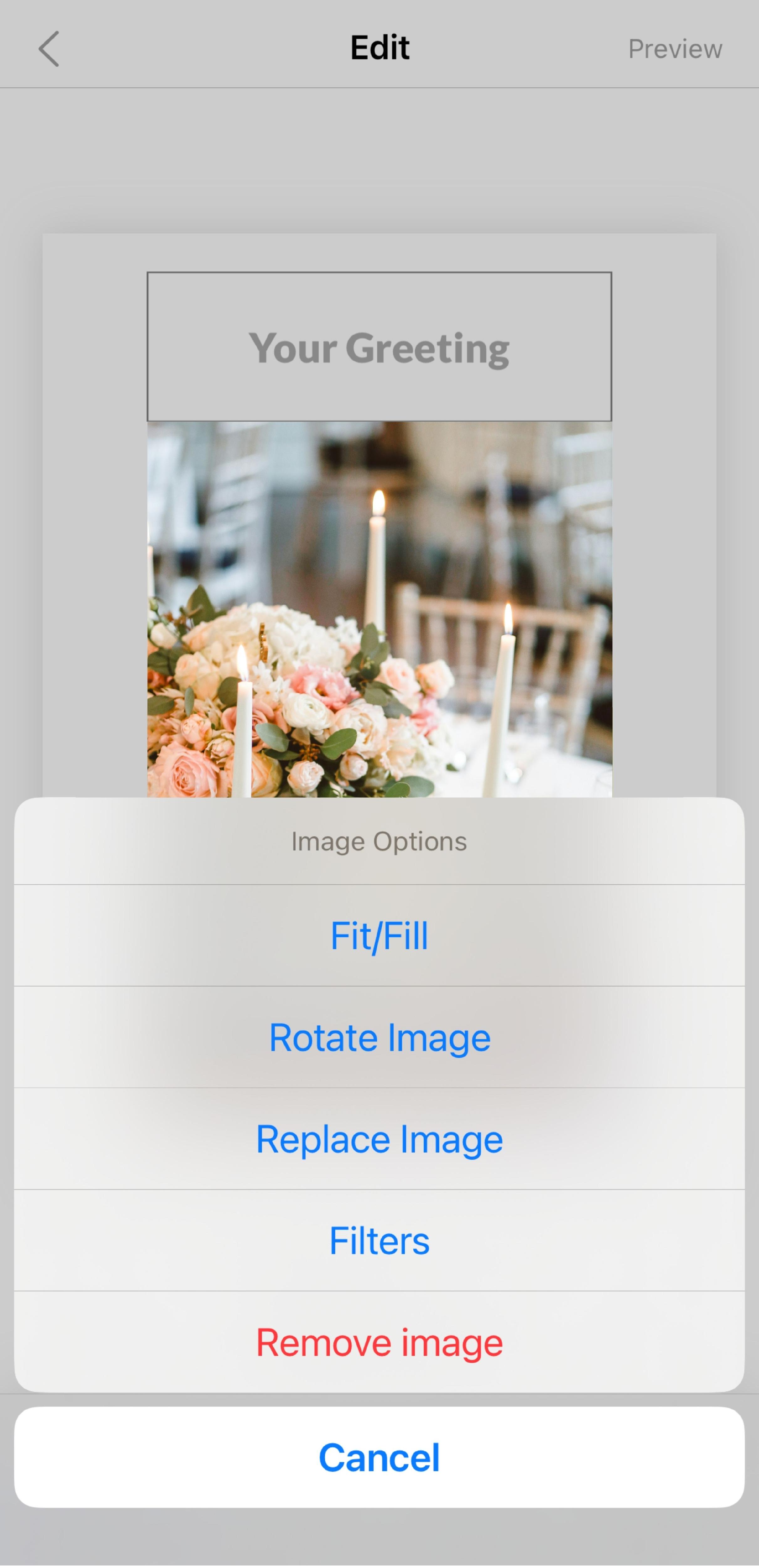 - Tap Templates to select a design and tap the down arrow to collapse the menu when finished.