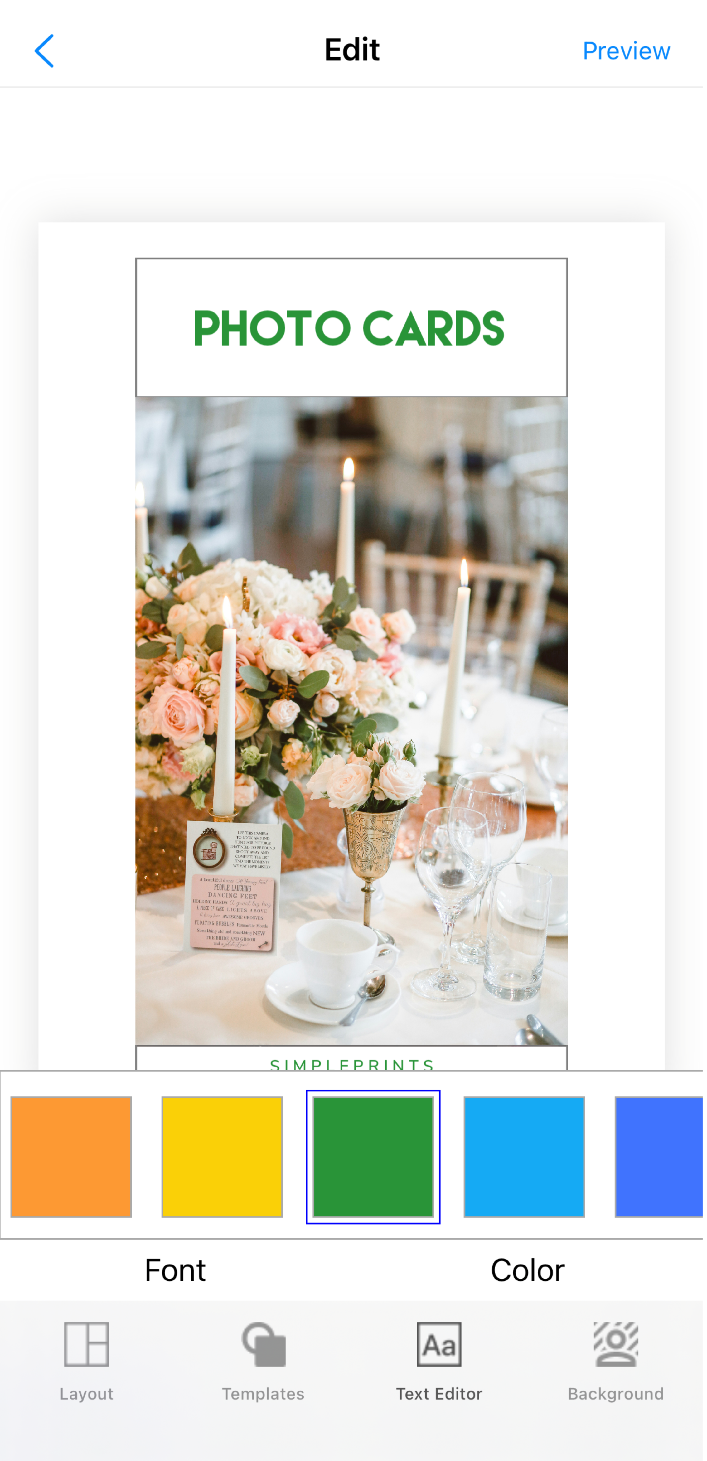 - Next, tap Text Editor and select the Font you would like to use on your photo card by scrolling through the available options.