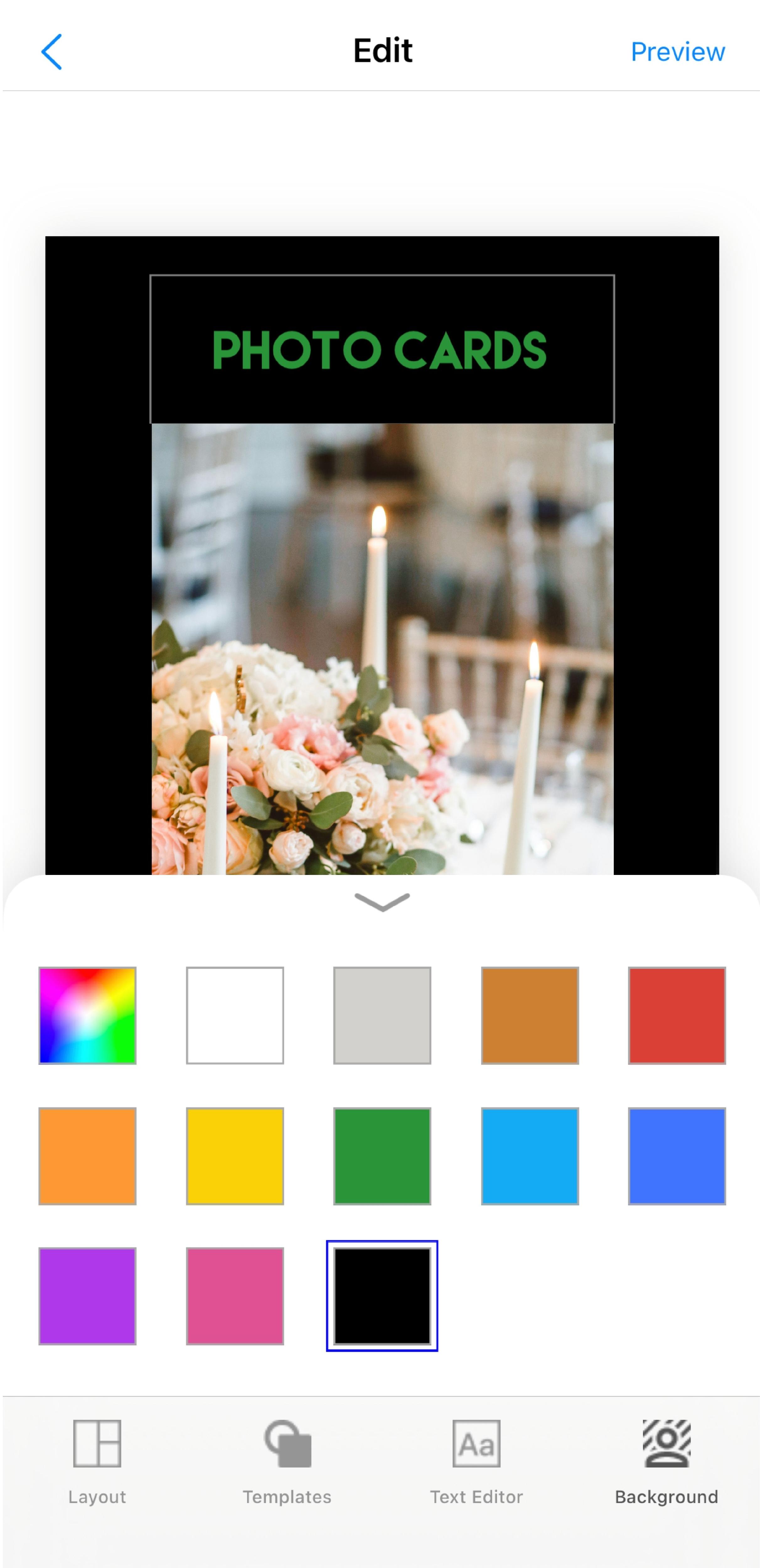 You also have the option to select a Background color. Tap anywhere on the card to close the Background menu or tap the down arrow.
